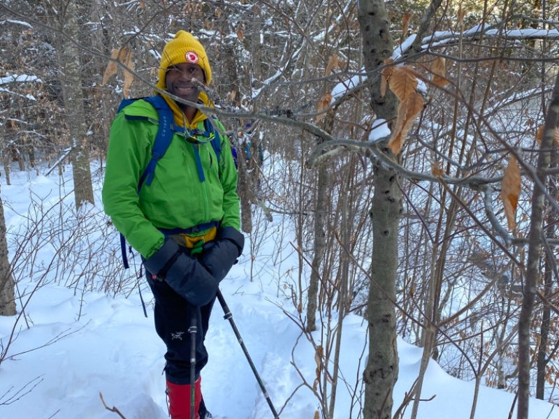 It’s a flat-ish start for the first two miles, then a steady climb for the next three to the summit. The hike will feel anywhere between INTERMEDIATE and CHALLENGING, depending on your experience and conditions. But we plan to keep the pace very moderate, to allow for an enjoyable day. If you can do a Catskill 3500 mountain, you can do this peak (as long as the weather cooperates, of course)! We’ll also provide micro spikes, crampons, and/or snowshoes, so you don’t have to worry about traction. And the view from the top is worth the effort! On a clear day, we will be able to see countless mountains in the High Peaks region.